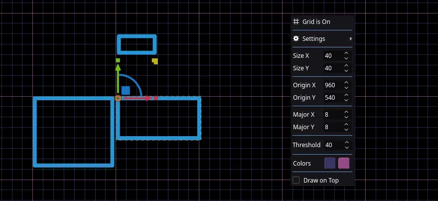 O alinhamento “no olho” acabou. O novo sistema de grade ajuda na organização do layout, e o recurso de Snapping (atração magnética) permite alinhar objetos ao Canvas, Caixas, Nós (Nodes), Pivôs e à própria Grade.